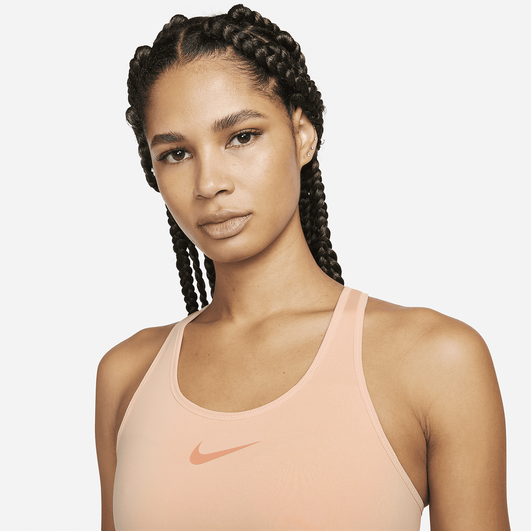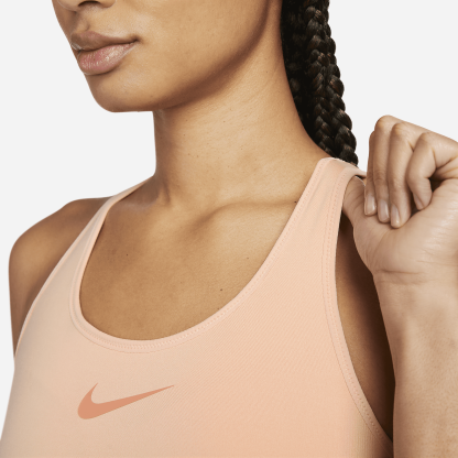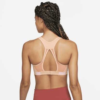 Fumbling to get into your sports bra can be a faint memory with this classic racerback. The adjustable bottom band makes it easy to slip on and off while giving you a customized fit. Structured support on the inside helps keep everything in place while you move. Looking for a compressive feel for high-impact activity? Your usual size should do. But if you're looking for a casually supportive fit, size up. This product is made with at least 50% recycled polyester fibers.